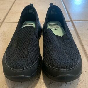 Womens Black Slip-On Wide Fit Shoes – Memory Foam Comfort, Size 10W