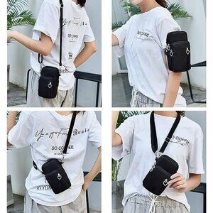 Multifunction Nylon Bag - Crossbody phone bag design makes your cellphone stay safe with you while keeping your hands free. Cross body wallet bag with elastic wrist strap and detachable / adjustable shoulder strap, which can be used as a single shoulder bag , mobile phone bag, travel bag, sports armband, wrist wallet.