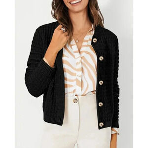 ❤️Women's Black Spring Cardigan Sweaters Casual Long Sleeve Trendy Outerwear