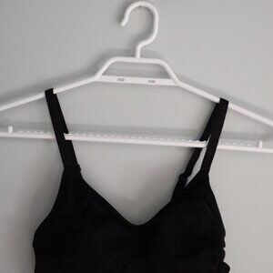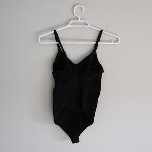 Womens Black Sz L/XL One Piece Spaghetti Strap Thong Fitted Compression Bodysuit