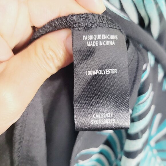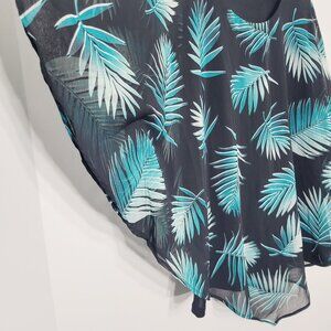 Women's Black Teal Leaf Print Cap Sleeves Tank Top Underneath Blouse Plus Size