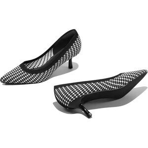 Women's Black & White Pumps 2 inch Kitten Heel Pointed Toe Low Heel Dress Shoes