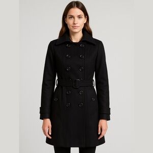 Women’s Black Wool Blend Belted Coat SZ S (New)