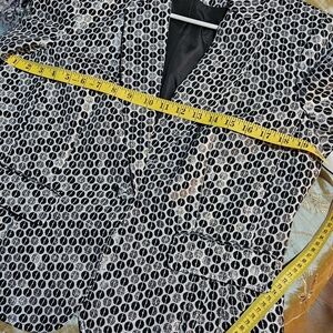 Women's Black and Cream Sequined Patterned Blazer. Size Large.