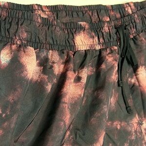 Stylish and comfortable women's shorts featuring a trendy black and pink tie-dye design. Perfect for casual outings or lounging at home.
