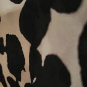 A pretty every day top in black and white print on a silky comfortable fabric. Scoop neck and self ties at neck. Cap sleeves. Beautiful with black or white pants for work or evening
