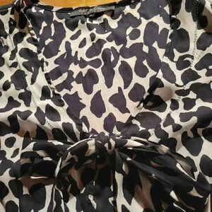 Stylish and chic, this black and white animal print blouse is perfect for any occasion. Its elegant design offers a flattering fit, making it a versatile addition to your wardrobe.