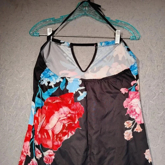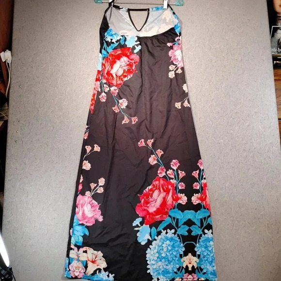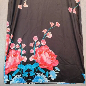 Women's Black with Red Roses Full Length Spaghetti Strap Dress in Size XL.