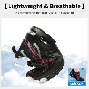 【Lightweight & Breathable】Running shoes women are made with a lightweight mesh material with stretch woven upper,are designed to prevent overheating during walking,running and lets your feet move freely.