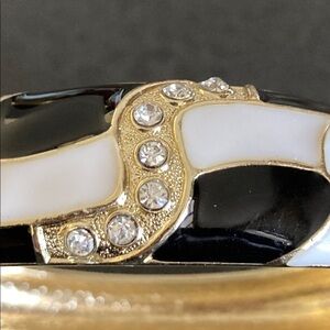 Women’s Black/white/rhinestone enamel hinges bracelet. This bracelet is in excellent condition and would compliment many outfits in your wardrobe. Will fit a 6.5-7.5 wrist nicely, depending on how loose you want it.