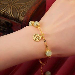 🧿Women's Jade Bracelet: You will get 1 Jade Bracelet. The Hetian jade bracelet is made of high quality natural jade, and the gold leaf is made of alloy. Exquisite workmanship, smooth surface, comfortable to wear for a long time.
