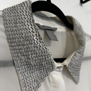 Women's Blouse - Sheer Cream Blouse with Sequin Collar