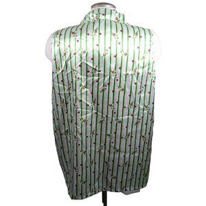 Womens Blouse Size XL Striped Sleeveless Floral Satiny Shiny Button Up Collared