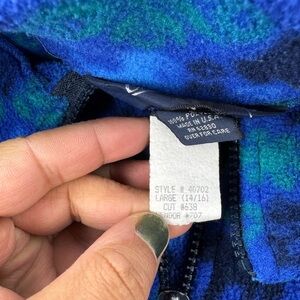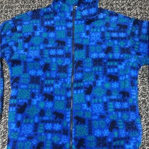 Keep warm and stylish with this blue bear pattern jacket. Perfect for outdoor adventures.