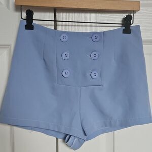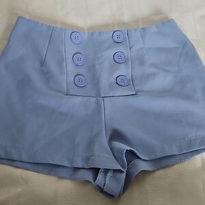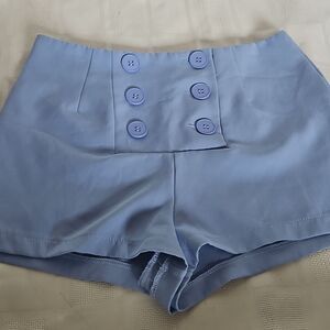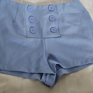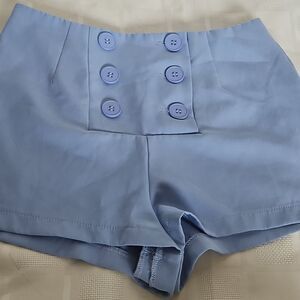 Stylish women's blue shorts featuring a chic buttoned design. Perfect for casual outings.