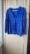 Elegant blue cardigan sweater with delicate embellishments. Perfect for adding a touch of style to any outfit.