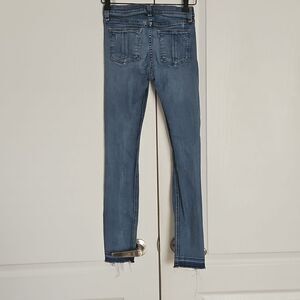 Stylish and comfortable women's distressed jeans in a classic blue color. Perfect for casual outings