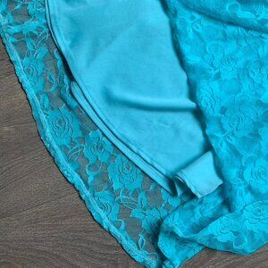Women's Blue Floral Lace Dress Top Sleeveless