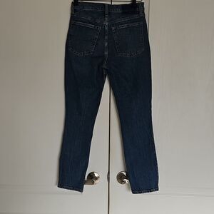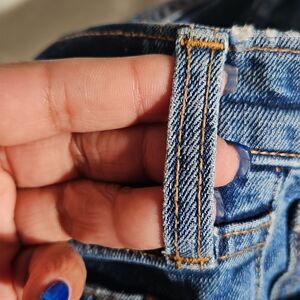 Stylish women's blue jeans with a trendy distressed look. Perfect for casual outings.