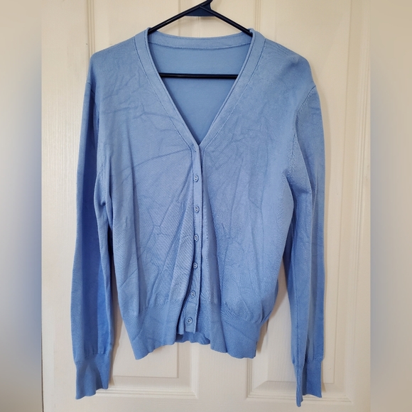 Women's Blue V-Neck Cardigan Sweater