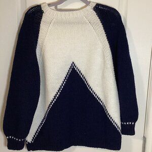 Women's Blue & White Knit Sweater Crew Neck Fisherman Nautical Preppy Tennis