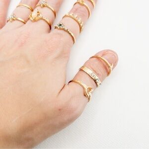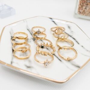 Womens Bohemian Set of 13 Gold Tone Rings Coastal Contemporary Statement Costume