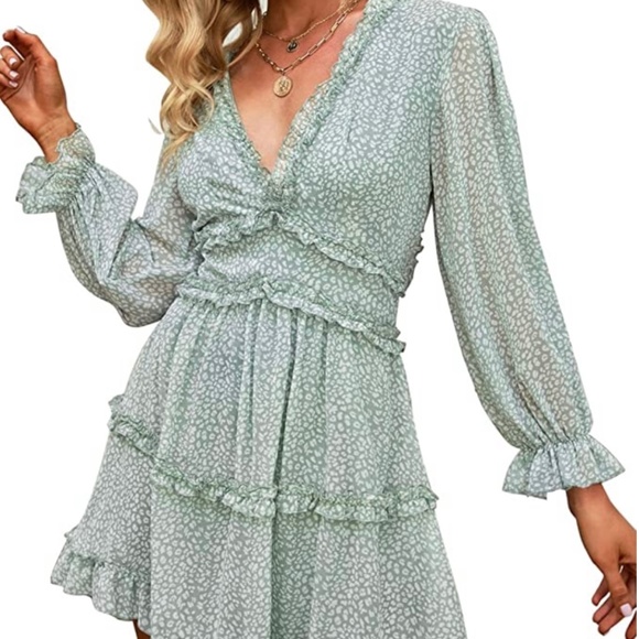 Women’s Boho Pastel Leopard Print Long Sleeve Mini Dress