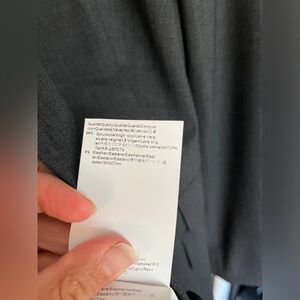New without tags! Sophisticated and timeless style. Blazer features two-button closure, notched collar, long sleeves (no buttons on cuffs), one chest pocket, four flap pockets. 96% virgin wool, 4% elastane.
