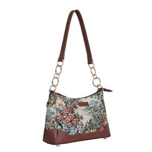 Elegant Tapestry & Leather Blend: This Sling Hobo Shoulder Bag is Made from premium tapestry fabric with genuine leather trims and a stylish chain strap with a leather grip, offered in Vintage, Geometric, Botanical, Floral & Abstract Designs.