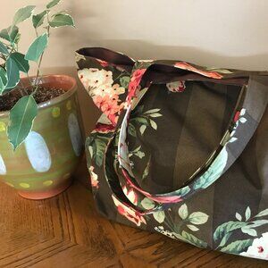 Women's Brown Floral Tote Bag, Market Tote Bag, Work Tote Bag, Casual Tote Bag