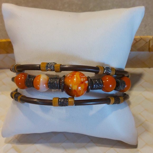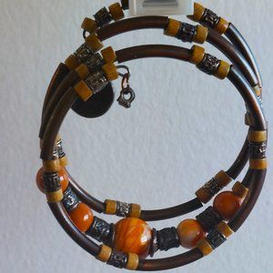 Hand-tailored elegance, Warm colors and exuberant designs, A ripple of textures describes this Brown Mix wraparound bracelet with the following additional details: