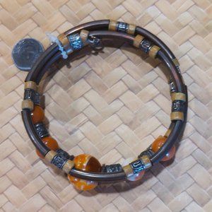 Women's Brown Mix Wraparound Bracelet w/Coin Accent - NWOT