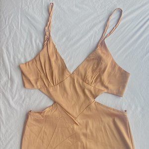 Women's Brown Silk Sleeveless V-Neckline Outdoor Party Long Maxi Dress
