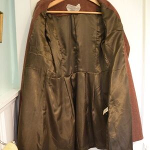 Beautiful women's fall coat. Two tone brown. A line with flared cut. Features a tweed material and cloth combination. Would fit a size medium best.