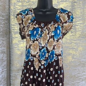 Women’s Brown/Cream Floral Print Tiered Maxi Dress