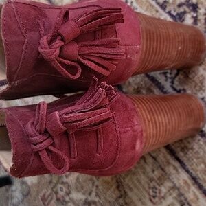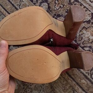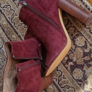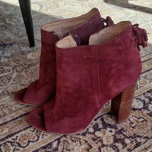 Women's Burgundy Peep Toe Suede Ankle Heel Boots Size 7 By Halogen