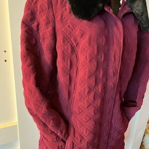 Women's Burgundy Quilted Ski Jacket with Faux Fur Collar
