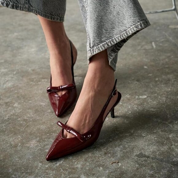 Sexy Burgundy Heels:This season's hottest shade, burgundy slingback heels add a bold, fashion-forward statement to any look.