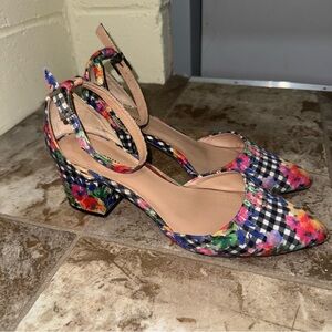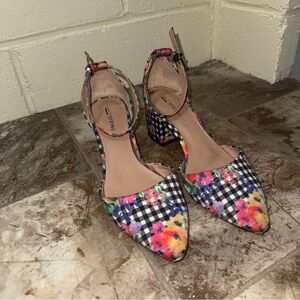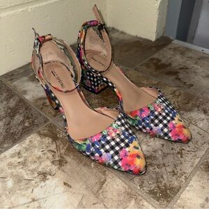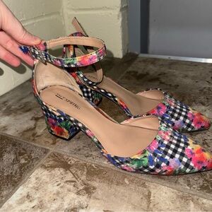 Women’s Call it Spring Brand Floral Checkered Women's Block Heels Size 7.5