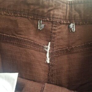 Brown Cropped Capri Pants Wide Leg Front Pockets Belt Loops Unmarked Brand and Size Side Slit at Hem