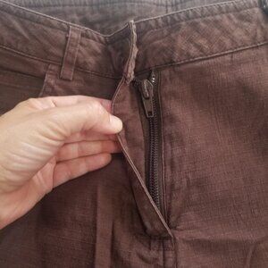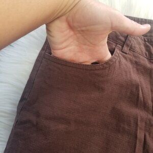 Women's Capri Brown Cropped Summer Pants Wide Leg Zipper Front Pockets Classic