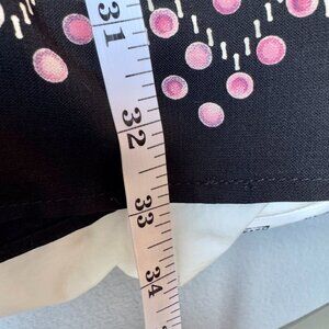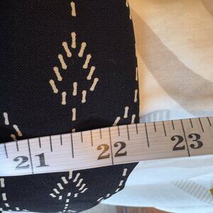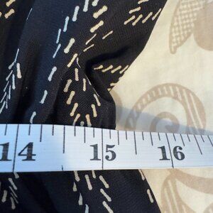 Black with cream, pink, and purple tribal bohemian pattern long sleeved dress. Elastic waist, knee length. Size S, fits more like a M. Bust measures 18.5 inches laying flat, waist 15 inches flat, hips 22.5 inches flat, length from shoulder to hem is 33 inches. Great used condition, cat friendly, nonsmoking home.