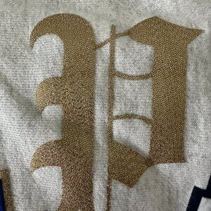 Genuine Champion wear. heavy duty hoodie with embroidered and heat pressed Champion logo. Colour is white with multi coloured lettering. Size is a Small made of cotton and polyester.