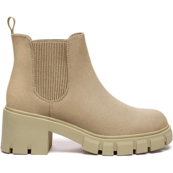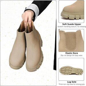 🆕Women's Chelsea Platform Ankle Booties Low Heel Slip-On Suede Casual Nude