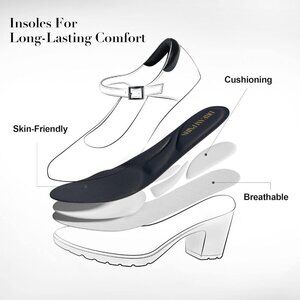 Classic Style: These Mary Jane style heels have an adjustable ankle strap & feature a classic round toe & smooth PU leather upper.