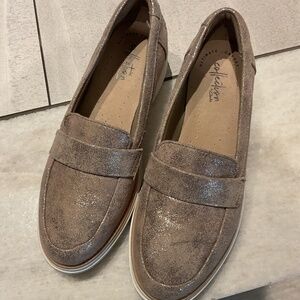 Women’s Clark’s collection loafers Gold colour White sole Size 7