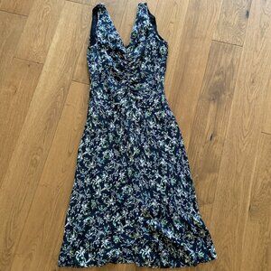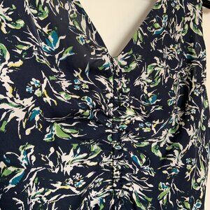 Women's Classiques Entier Silk Floral Ruched Front V Neck Dress Size 12