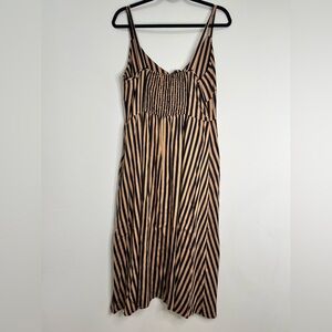 Women’s Cleo Tie Front Caramel and Black Striped Midi Fall Peak-a-boo Dress