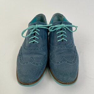 Women's Cole Haan Blue Suede Alisa Wingtip Lace Up Oxfords Shoes, Sz 7.5