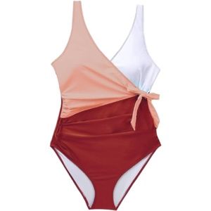 Women’s Coloured Blocked V Neck Wrap One Piece Bathing Suit